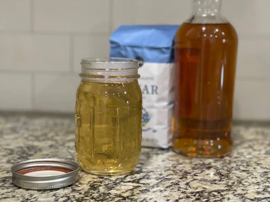 Allow your simple syrup to cool for 10 minutes before transferring it to an airtight container like a mason jar. Your syrup will keep in the fridge for a few months!
