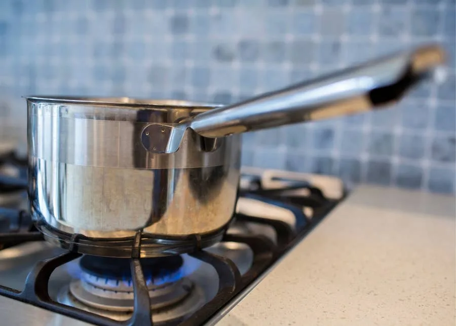 Place your sugar-whiskey water on your favorite stove burner and heat over medium-high. Give your mixture a good stir to encourage the sugar to break up.