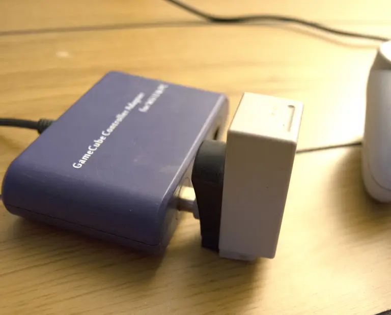 - Connect the GameCube controller to the adapter by plugging it into one of the ports.