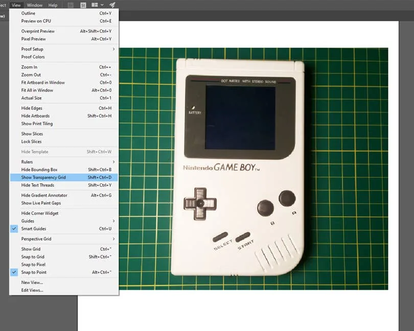 Next, we need to enable transparency in order to delete the background, otherwise it defaults to a plain white background. To do this, go to the top menu and navigate to View > Show Transparency Grid. The Shift + Ctrl/Command + D keyboard shortcut will also enable transparency.