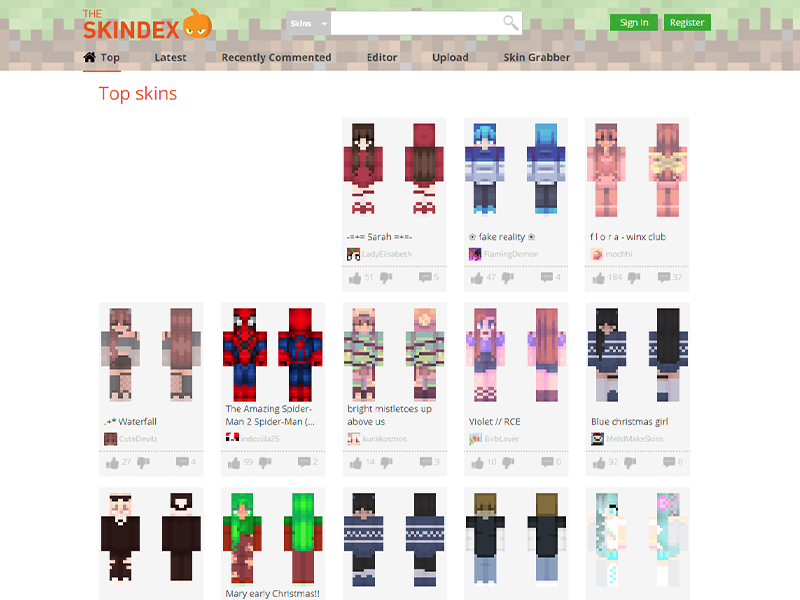 Our favorite website to find free Minecraft skins is The Skindex! Here you can find thousands of user-created skins to download and customize.