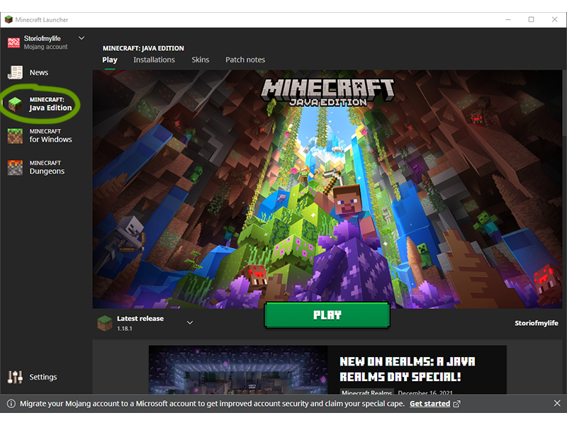 Open the Minecraft Launcher, making sure you have Java Edition selected on the left sidebar.
