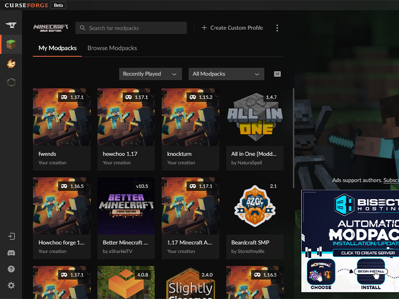 If you’re playing through CurseForge, that’s where your screenshots will be saved through. Open CurseForge then move to the next step.