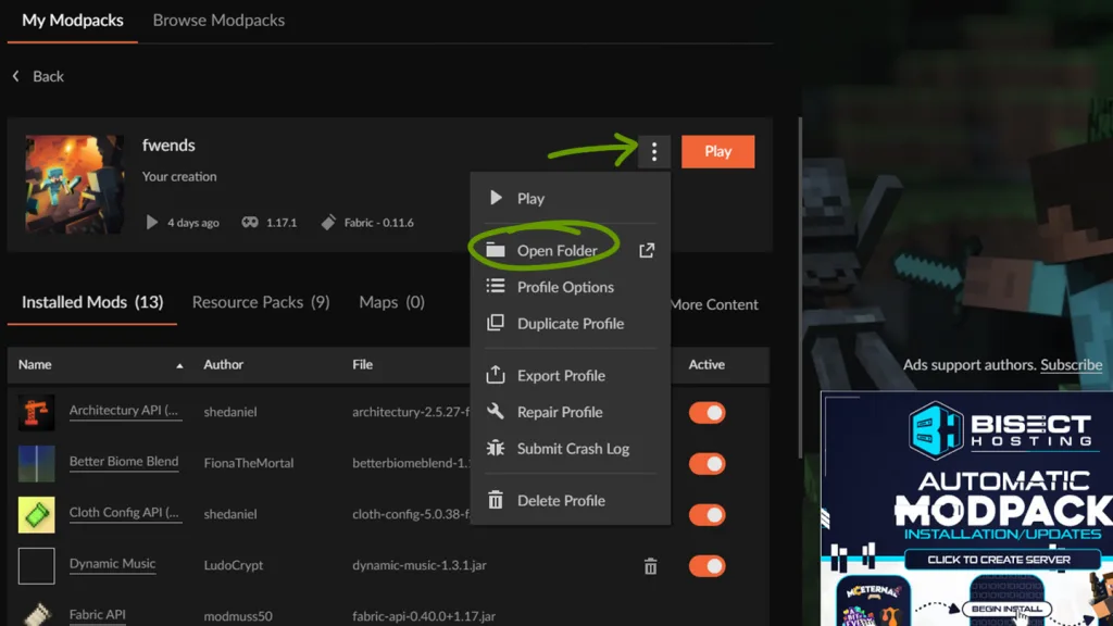 - Open CurseForge and navigate to the modpack you’re using.