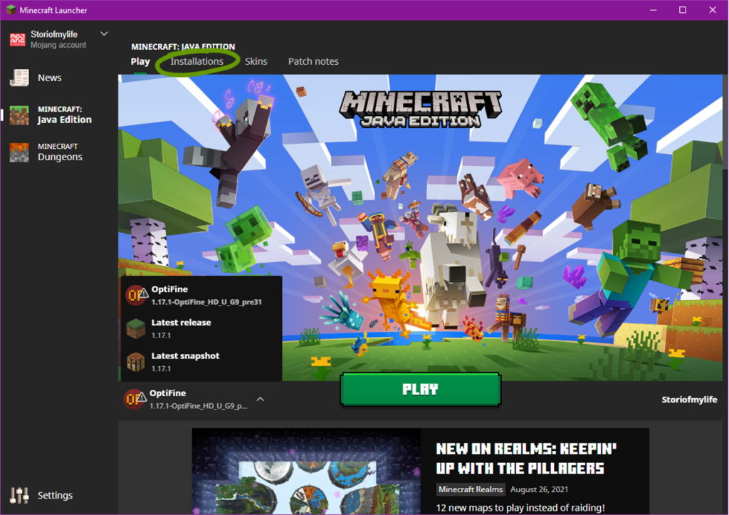 1. Open the Minecraft Launcher.