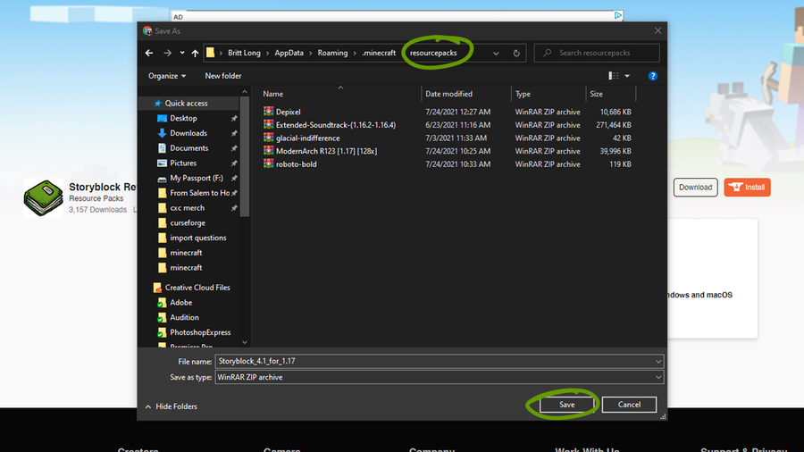 Download the correct game version of the resource pack you’ve chosen and place it within the Resourcepack folder found in Step 1. Make sure you don’t unzip the downloaded file!