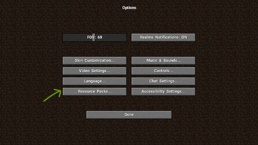 1. Click Options then Resource Packs.
