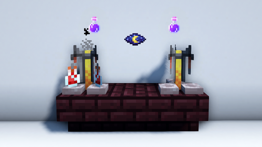 With all the ingredients gathered, put the Blaze Powder, Water Bottle, and Nether Wart in the Brewing Stand.