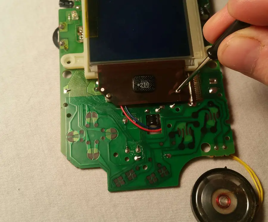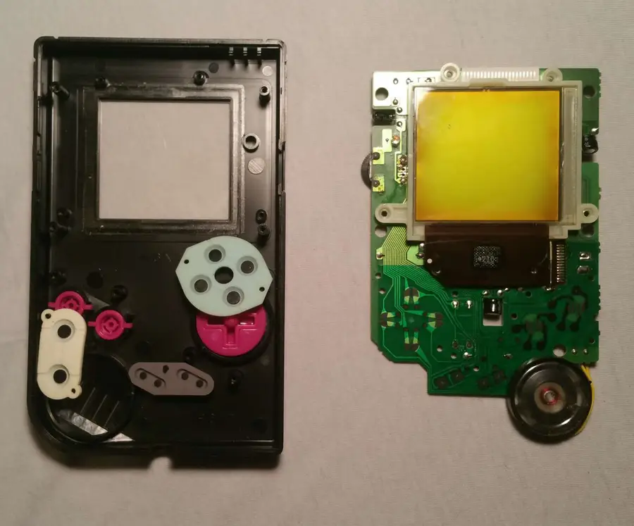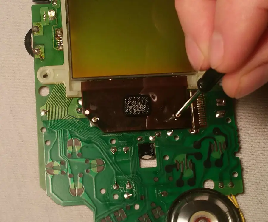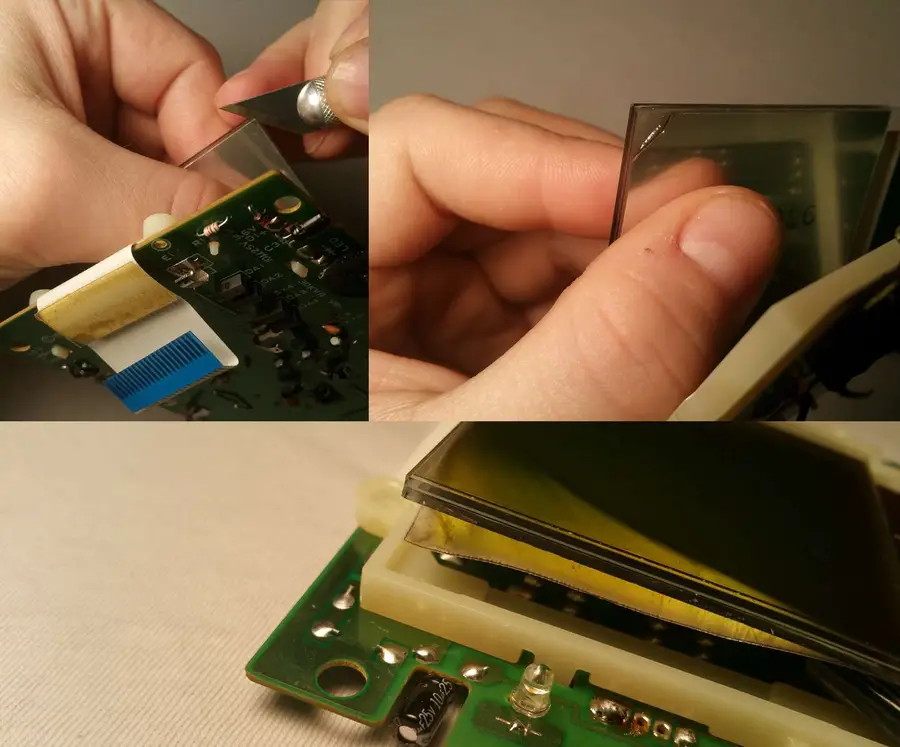 The Game Boy screen uses a polarizing film which needs to be removed. It will be replaced with a new polarizing film from the backlight kit.