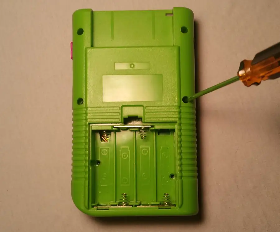 Identify the best screwdriver to use and remove the screws from the back of the Game Boy. The battery cover and batteries will need to be removed to expose the final 2 screws. You will need to account for 6 screws total.