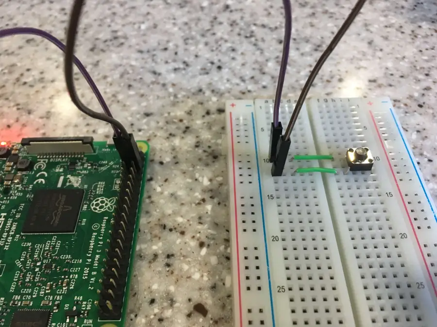 The first thing we’ll do is wire up a button and test the functionality using a breadboard. This is a very simple circuit, but it’s good to make sure it works before we move on.