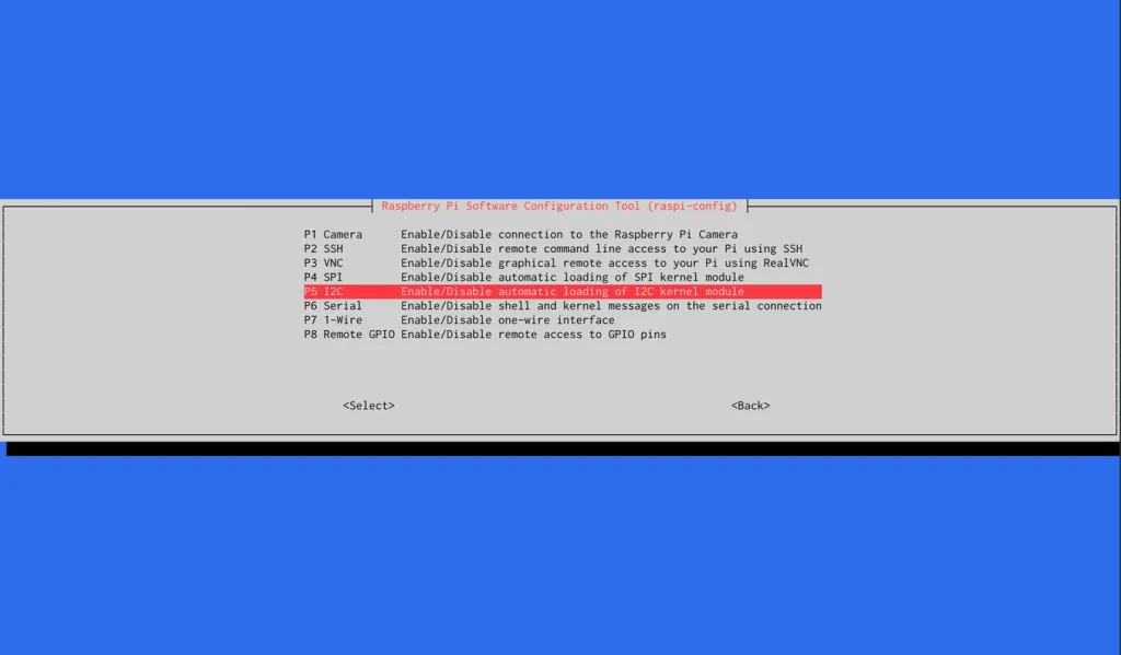 sudo raspi-configUnder Interfacing Options, select the option to enable I2C. Confirm the change and restart your Raspberry Pi.