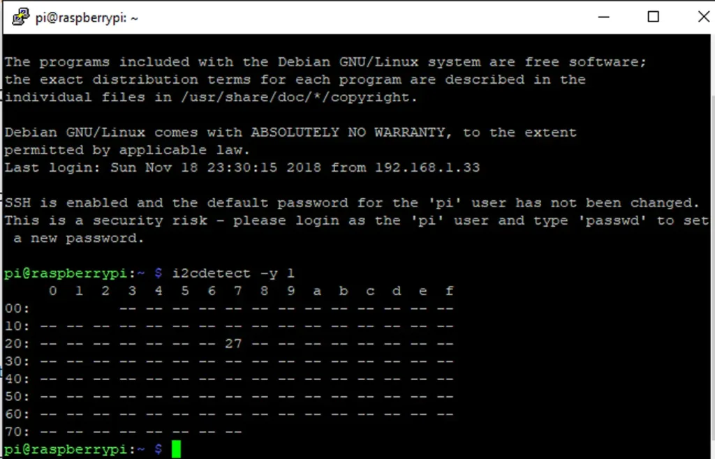 We need to see which I2C address our LCD is using. To do this, we’ll be installing a package called I2C Tools. Run the following command: