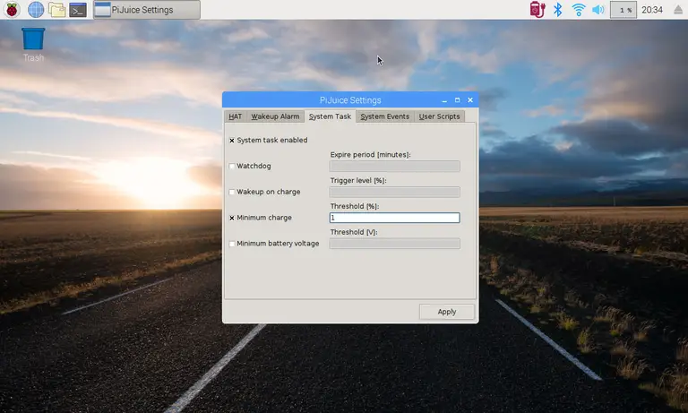 sudo nano /var/lib/pijuice/pijuice_config.JSONIn the system_task object, add the following: