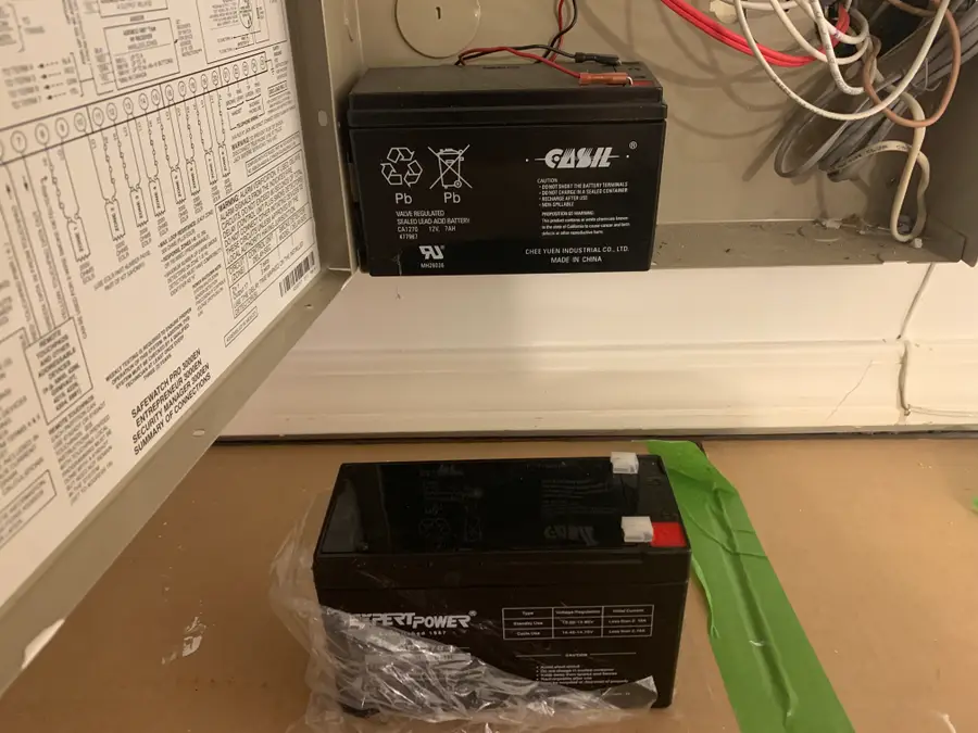 Place the new battery in the control panel and connect it to the alarm system, being sure to connect the red positive (+) and black negative (-) connectors correctly.