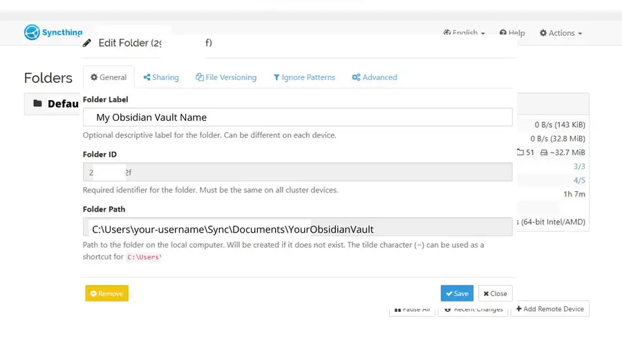 Check the SyncThing settings