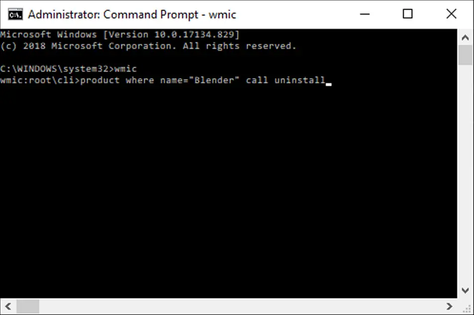 Uninstall using Command Prompt