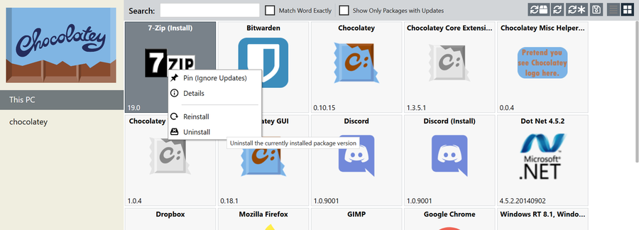 Uninstalling a program through the Chocolatey GUI